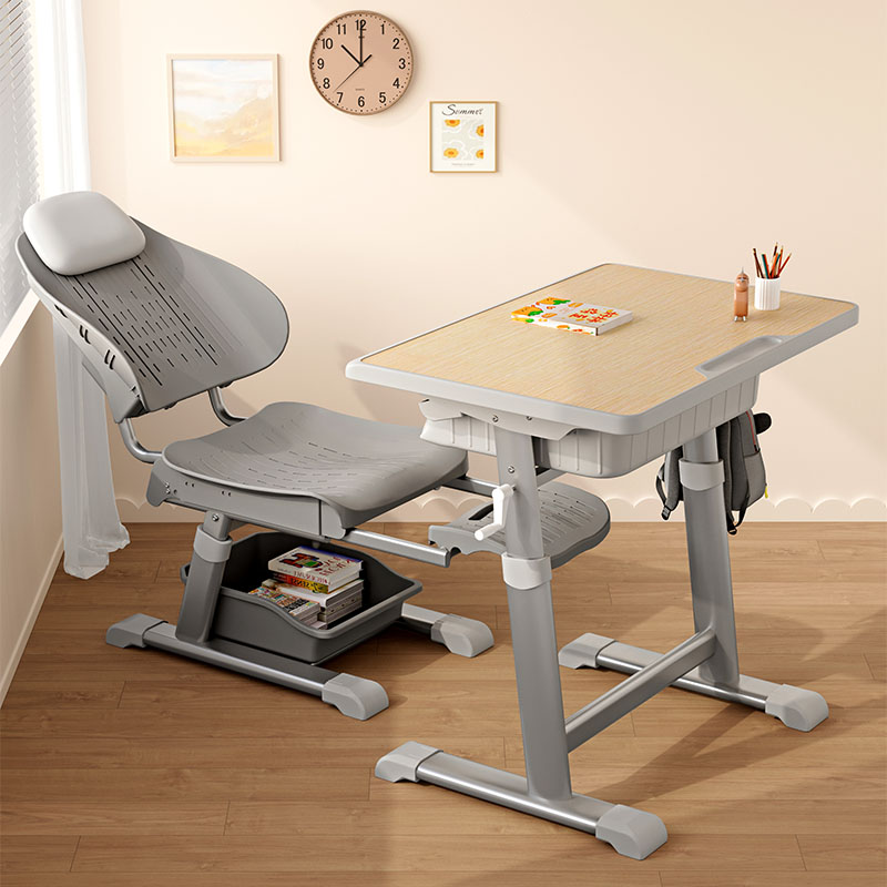 Adjustable Classroom Desk & Chair Set with Reclining Lunch Rest Function, Hand Crank Lift XS-A9068